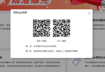 第三步:購買移動端關(guān)鍵詞用戶,選擇“金標(biāo)買家優(yōu)先曝光您的商品”,點(diǎn)擊下方“預(yù)覽APP效果”,系統(tǒng)會彈出對應(yīng)的二維碼。